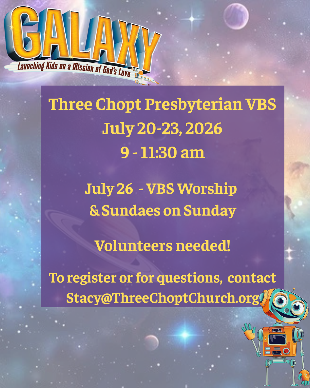 For more information, contact Director of Children & Youth Ministries, Rev. Stacy Deyerle: Stacy@ThreeChoptChurch.org.